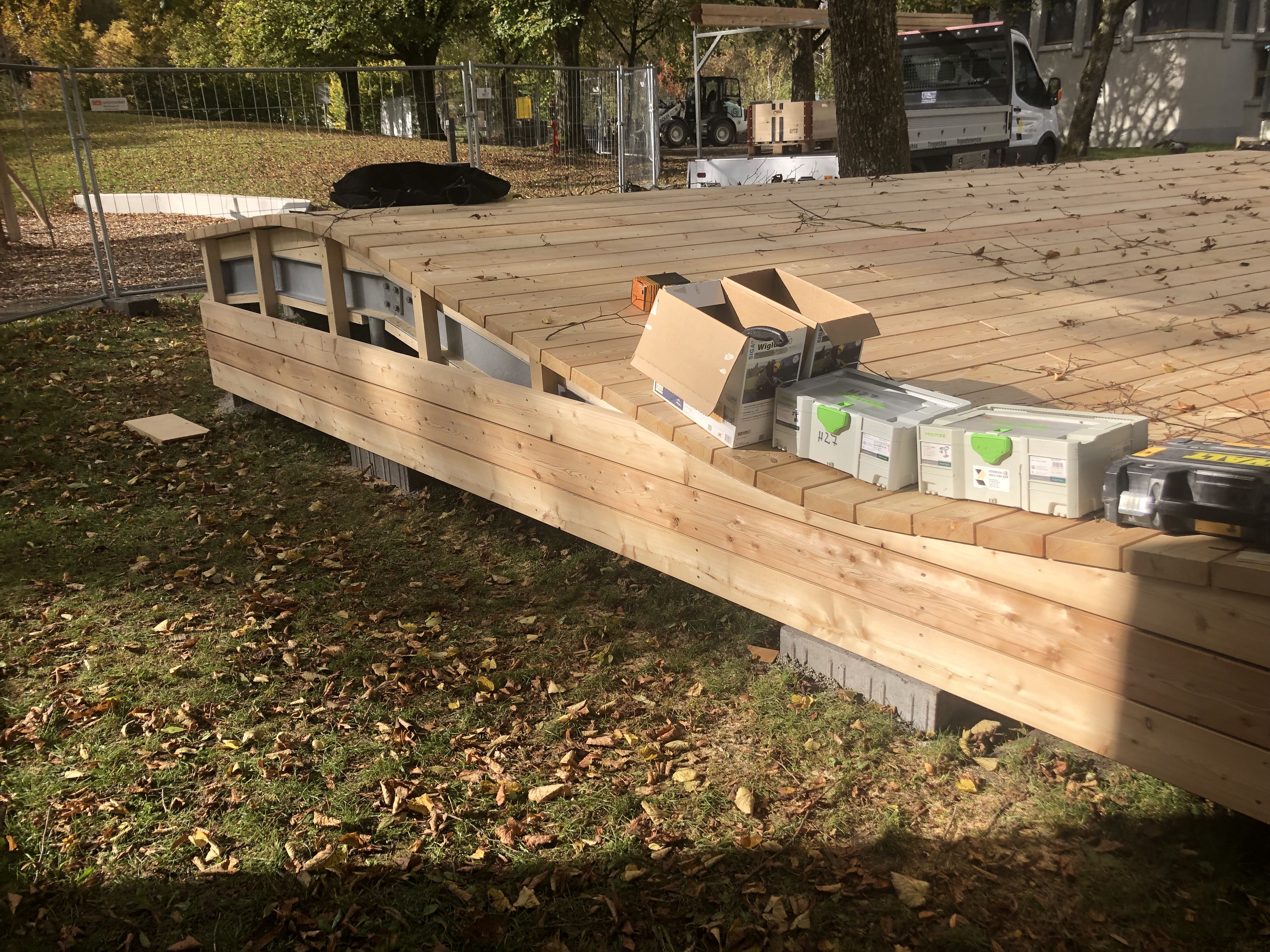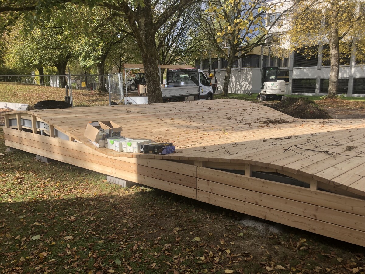 HOLZROST ALS SITZGELEGENHEIT BEI SCHULHAUS, WINTERTHUR
